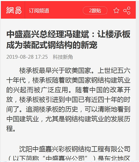 《媒体看中盛》——中盛嘉兴:让楼承板成为装配式钢结构的新宠