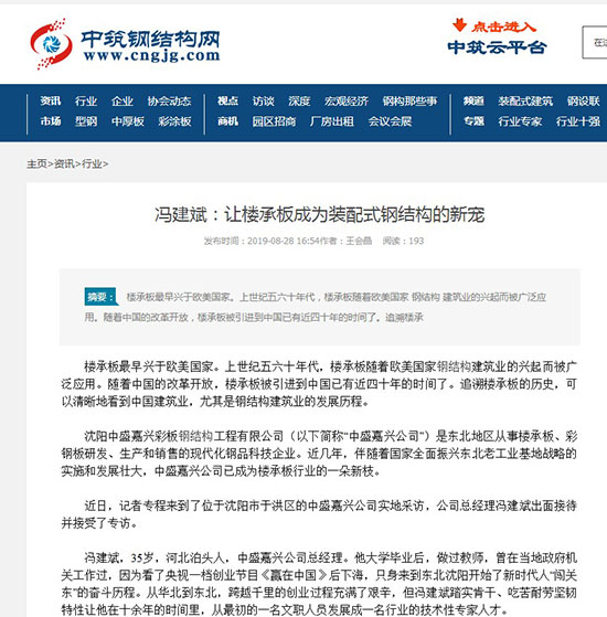 中盛嘉兴总经理冯建斌:让楼承板成为装配式钢结构的新宠
