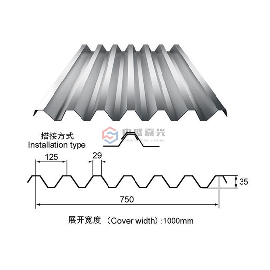 沈阳中盛嘉兴可加工YX35-125-750压型钢板厚度为0.3mm-1.5mm。