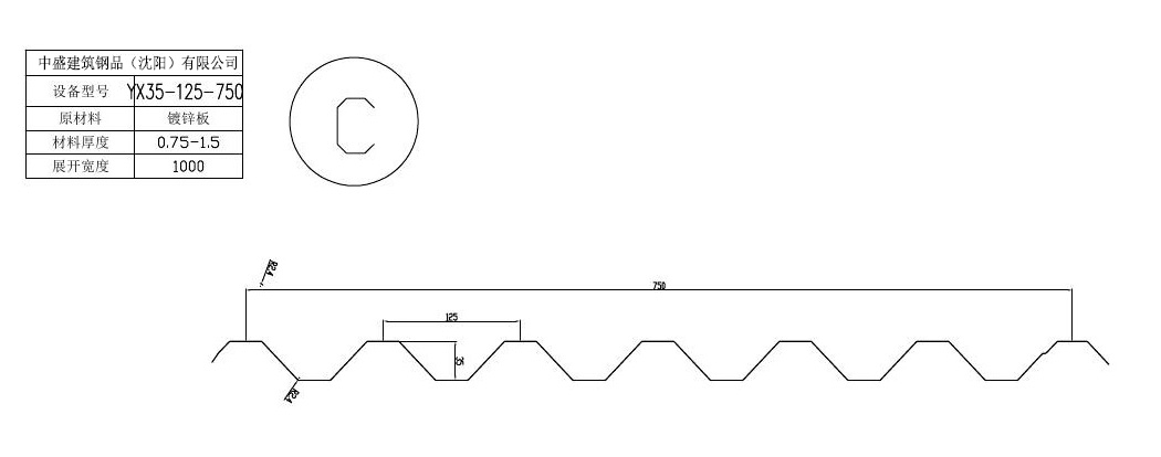 沈阳中盛-YXB35-125-750压型钢板板型图