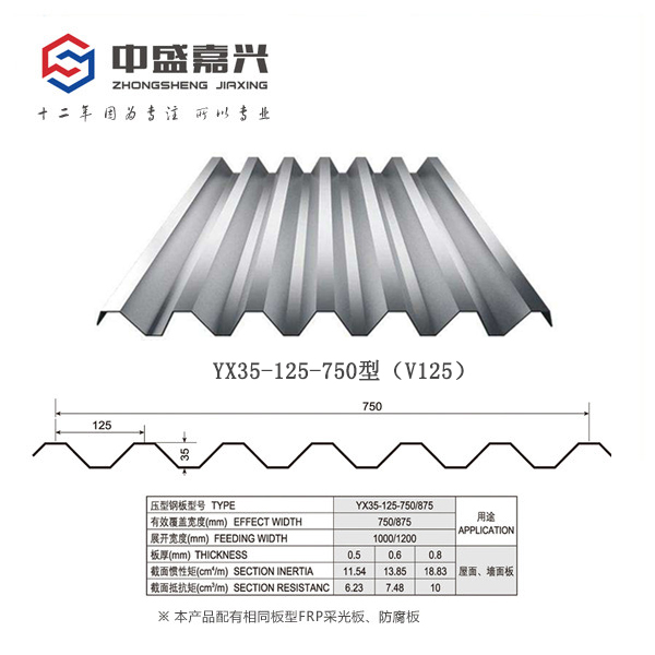 沈阳中盛嘉兴可加工YX35-125-750压型钢板厚度为0.3mm-1.5mm。