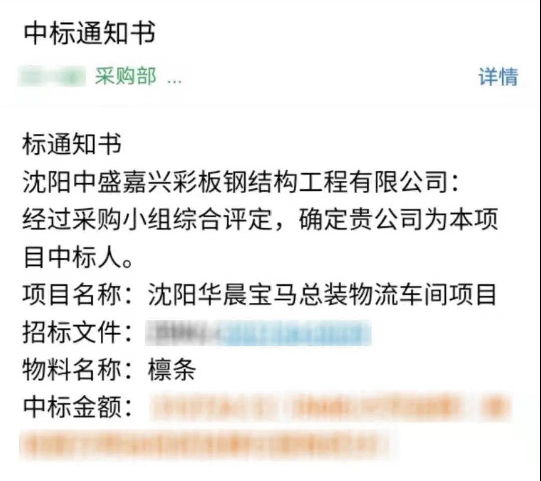 近日,中盛建筑钢品(沈阳)有限公司(以下简称中盛建筑钢品)旗下中盛嘉兴公司收到总包单位中标通知书,标志着中盛建筑钢品再次中标沈阳华晨宝马项目C型钢檩条订单,这是继2020年中盛公司为华晨宝马新工厂项目供应YXB65-170-510型闭口型楼承板、钢檩条以及压型板之后,第三次参与并中标华晨宝马项目。
